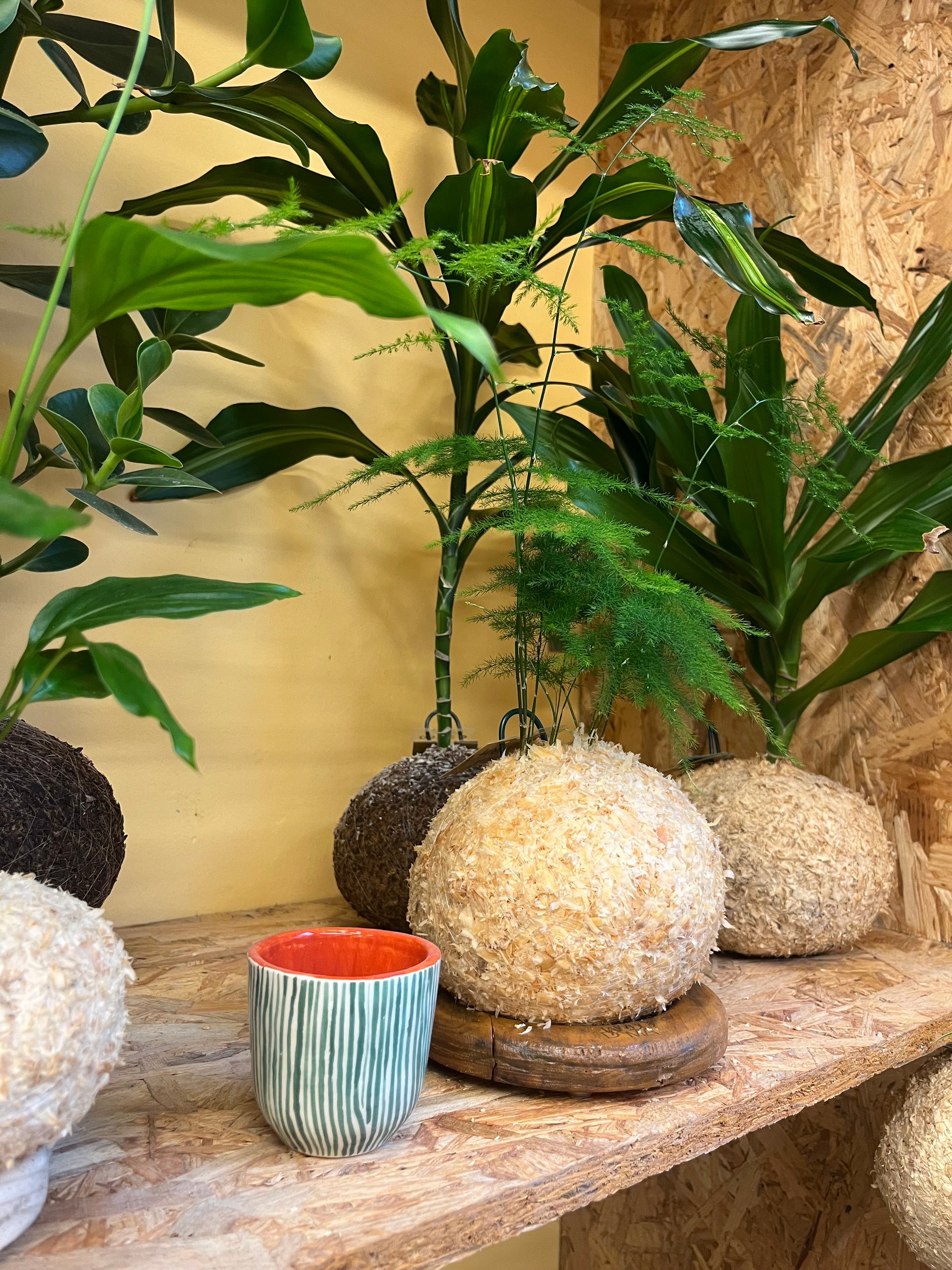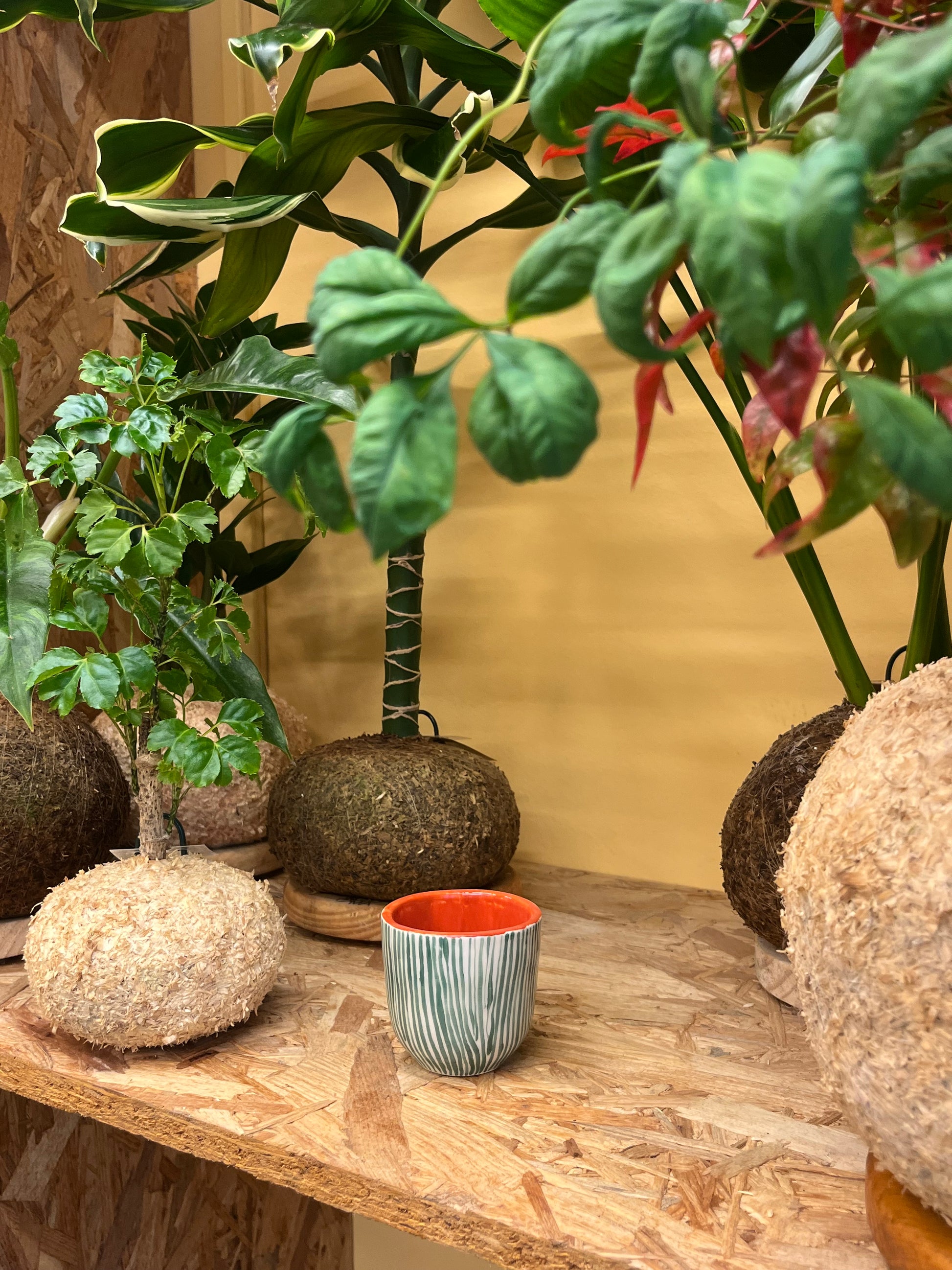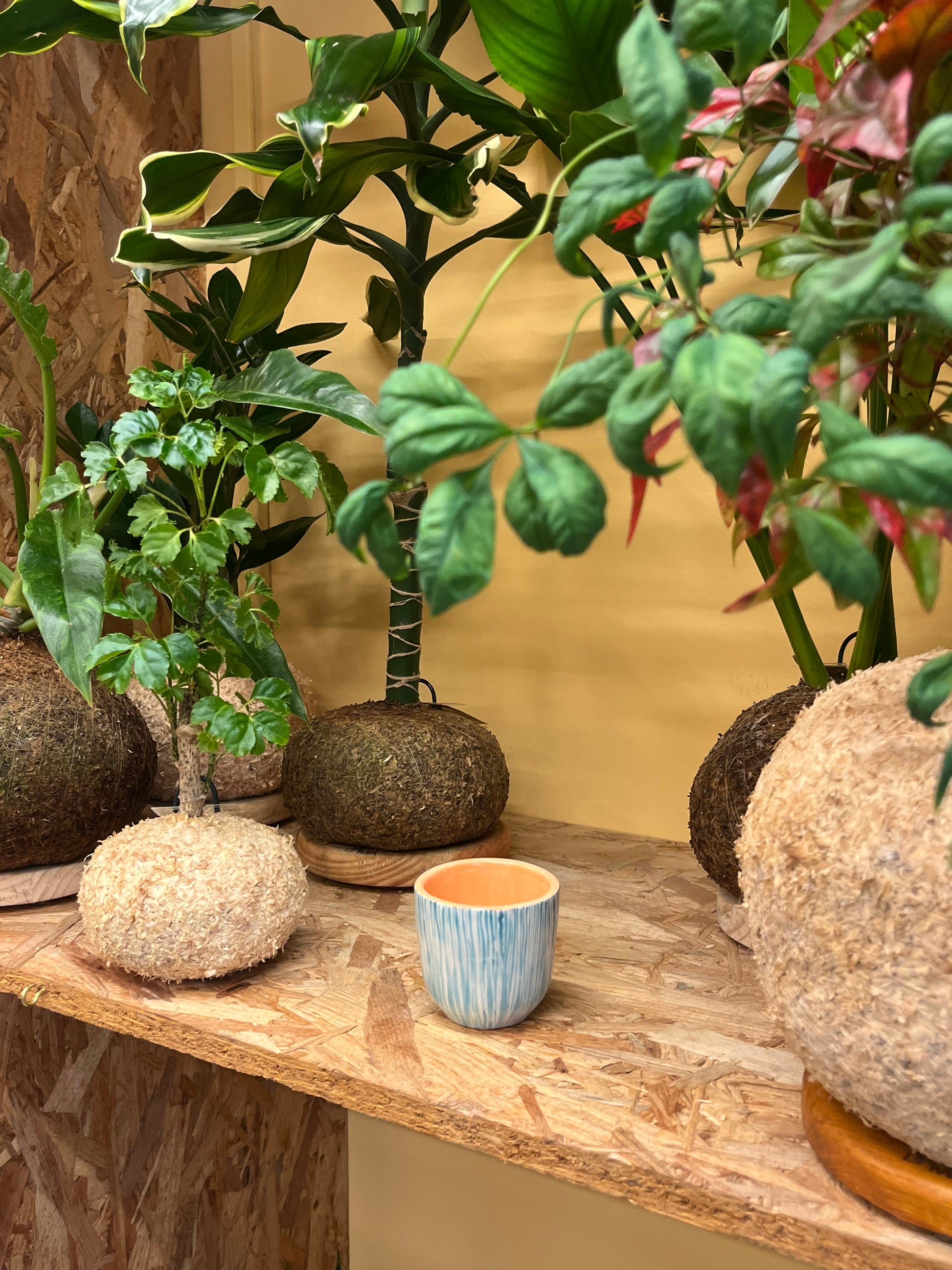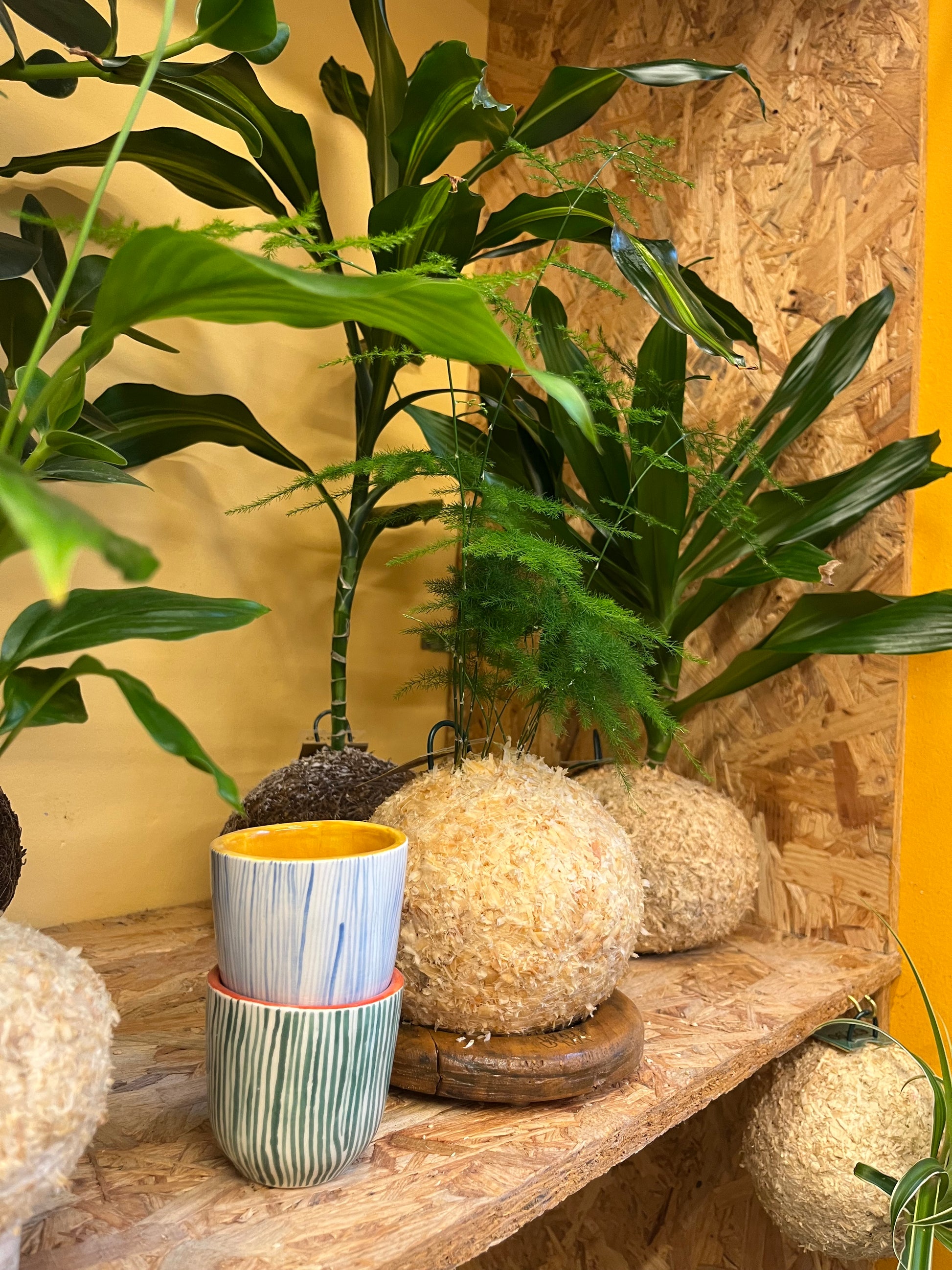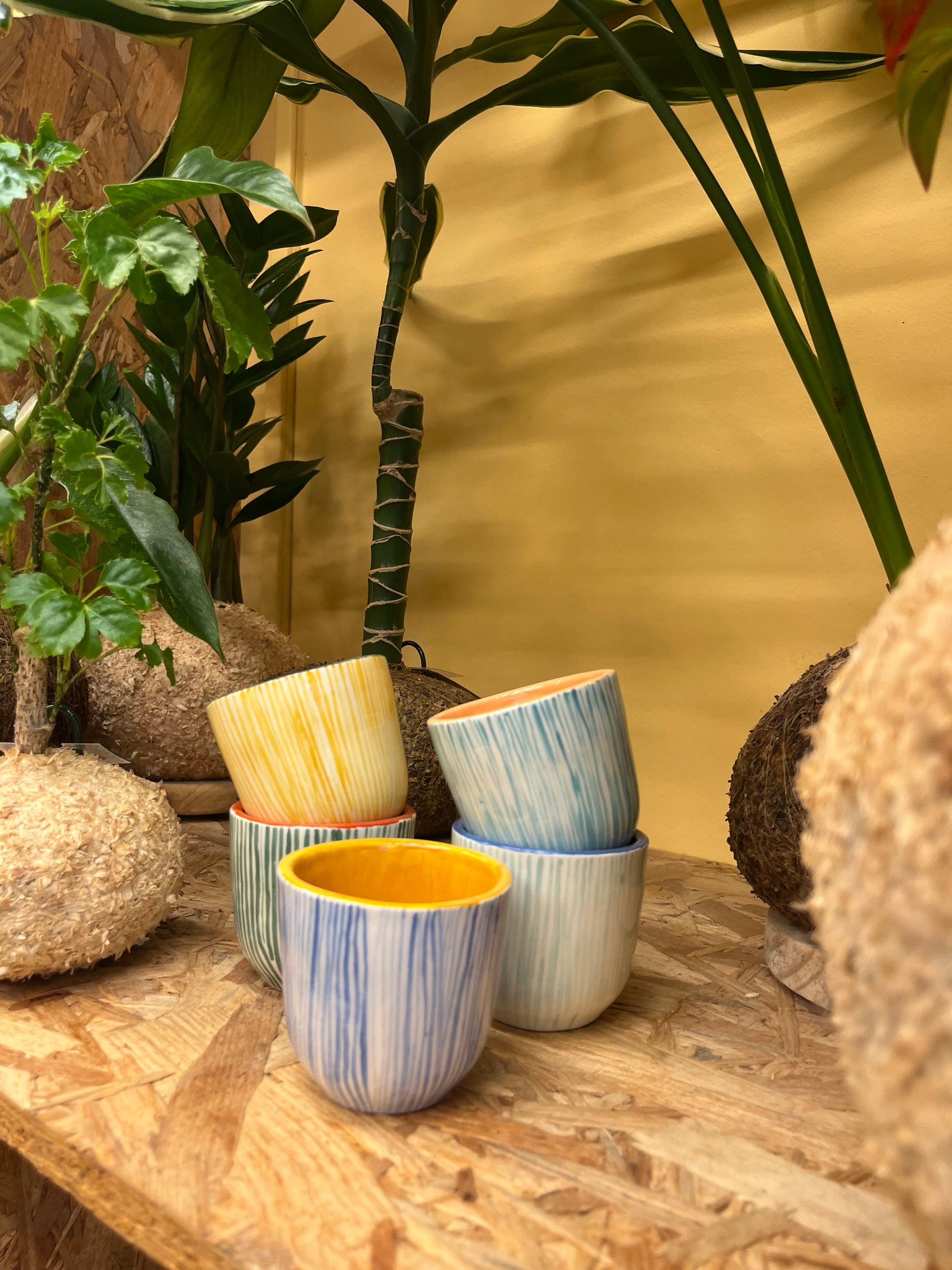 copinho feito à mão, com cores ousadas. a forma simples transforma-se em expressão artística, ideal para cada café ou chá do dia a dia.
